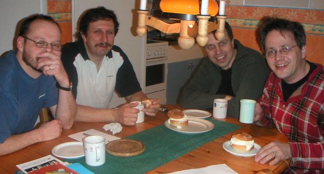 It all started 1985 February in Sweden. Me and my friends started the company PRODEO doing videos for companies. It was Per-Ola Hellberg, Peter Thelander, Leif Ydreborn and me Orjan Fjallstrom. One of the first videos was for Radscan in Nykoping, a company doing heat exchanger for the textile industry. Expert, home electronic. Nopol, truck cargo convertibles. Linkoping 700 years, a video for the celebration of the city anniversary. And many more. After a couple year we did a peaceful split up and kept on as friends but in different companies. The image is when we did the balancing of the books Februari 2003. Nowadays are we cooperating in different projects. My skills is multi camera lighting, set design and computer graphics.